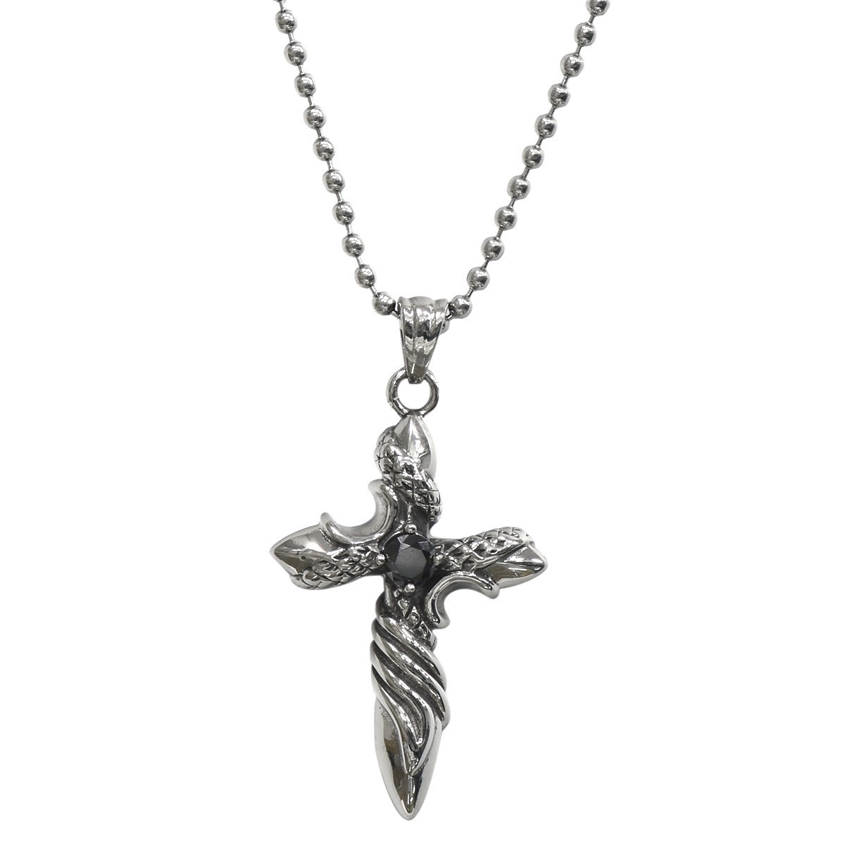 | 中央にジルコニアをはめ込んだクロス(十字架)モチーフのデザインペンダント。クロスに巻きつくようなデザインが素敵です。 素材には本体・チェーン共に金属アレルギーに強いステンレスを使用。 ※こちらの商品は色違いの商品も取り揃えております、宜しければ店舗内検索機能よりお探しになって下さい。 |