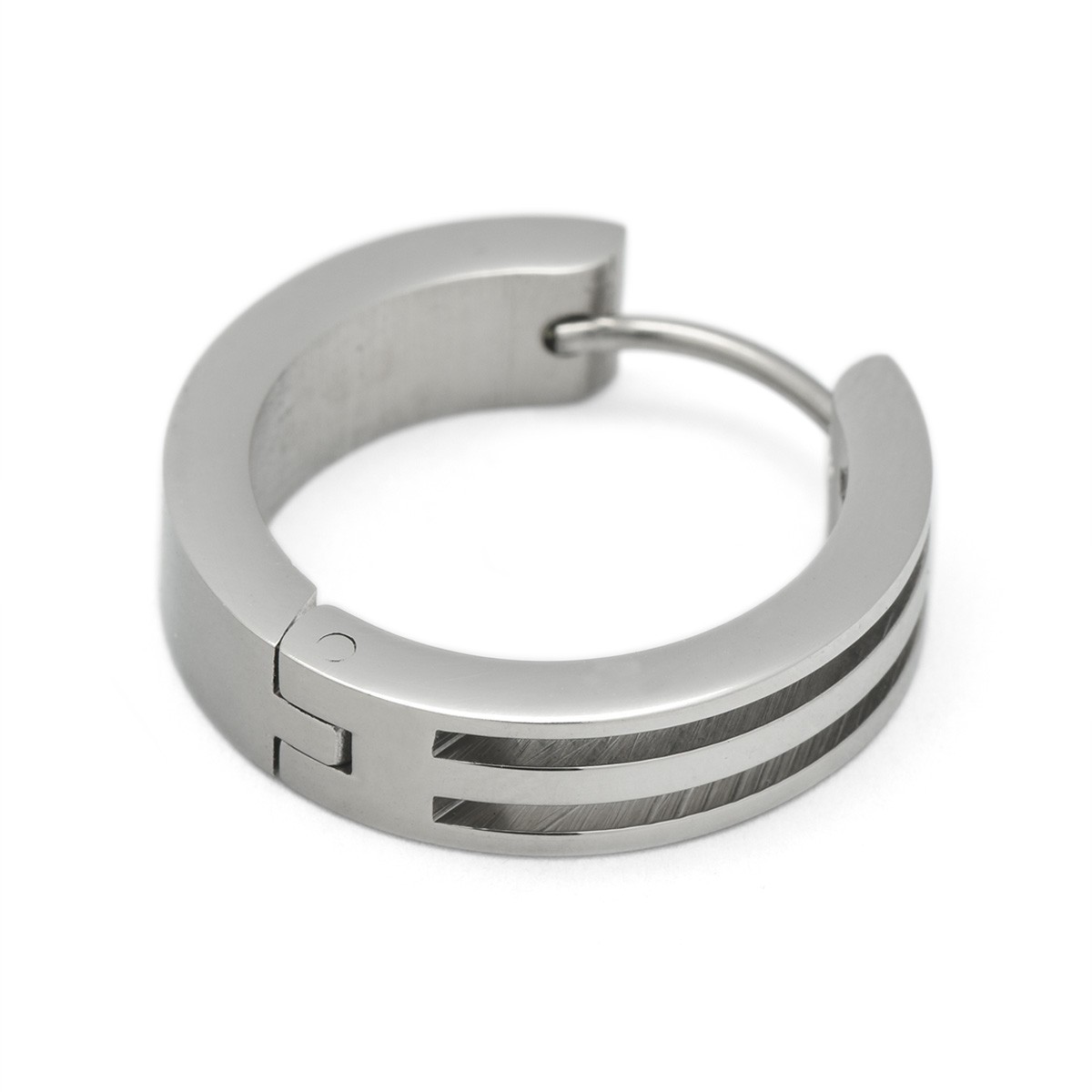 | 半面に2本の透かしラインがデザインされたクールな印象のステンレス製フープピアスです。※当商品は1個づつ販売の「バラ売り商品」です、ペアではございません。 ※こちらの商品はサイズ違いの商品も取り揃えております、宜しければ店舗内検索機能よりお探しになって下さい。 |
