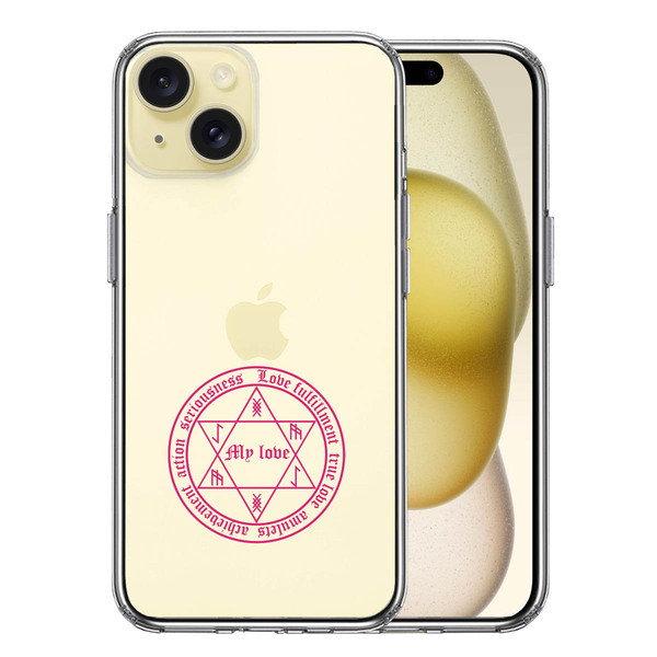 iPhone15Plus ケース クリア 白魔術 魔法陣 恋愛成就 ピンク スマホケース 側面ソフト 背面ハード ハイブリッド