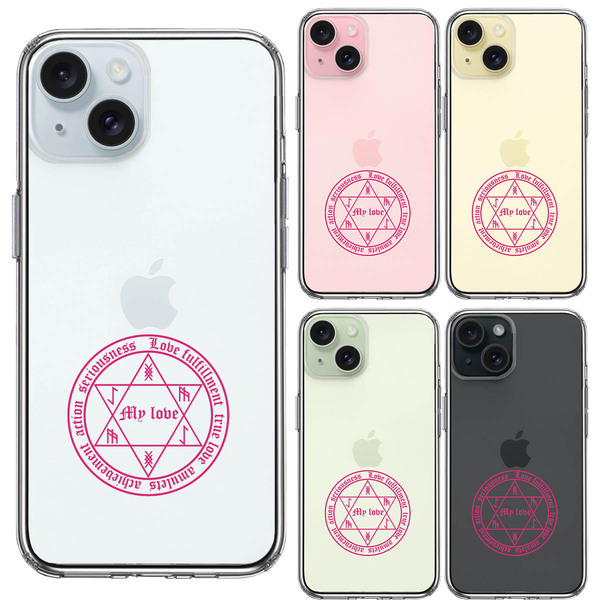 iPhone15 ケース クリア 白魔術 魔法陣 恋愛成就 ピンク スマホケース 側面ソフト 背面ハード ハイブリッド