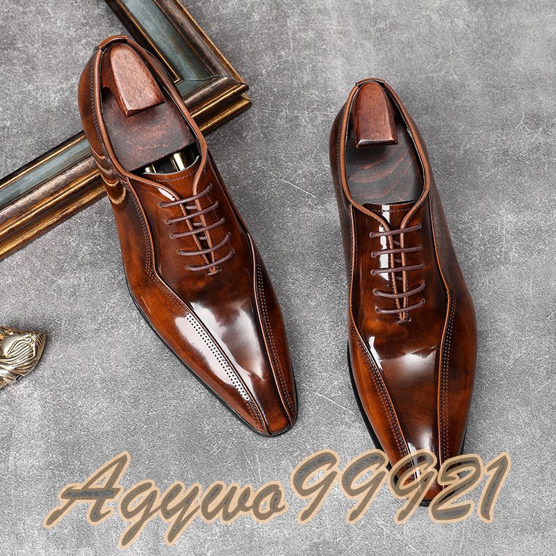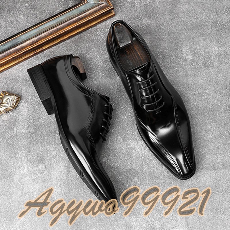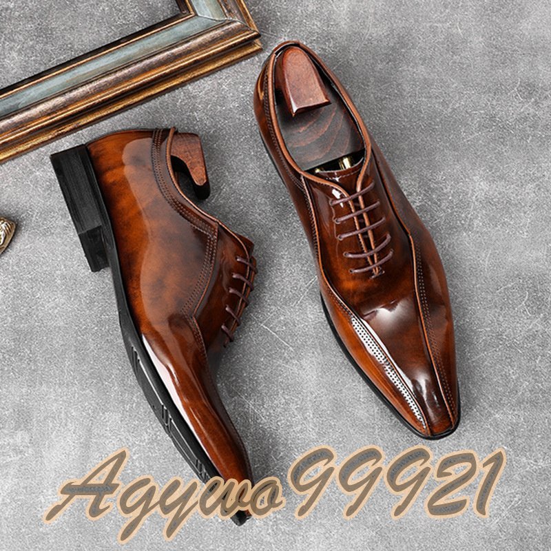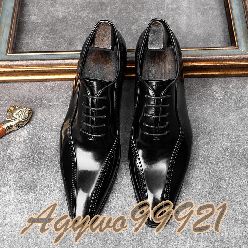 最高級 ビジネスシューズ メンズ ドレスシューズ 正規品 本革 レザーシューズ 冠婚葬祭 通勤 個性 手塗仕上げ 革靴 ブラック 選択24.5cm