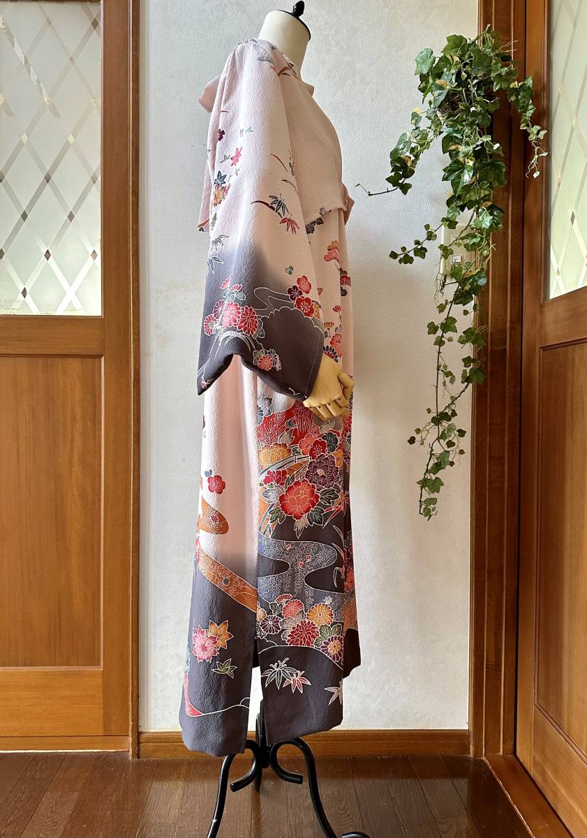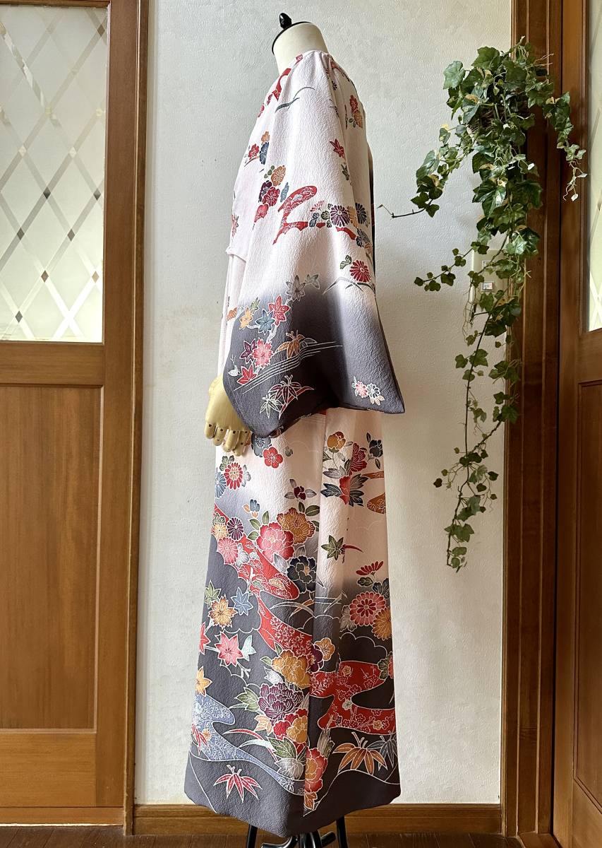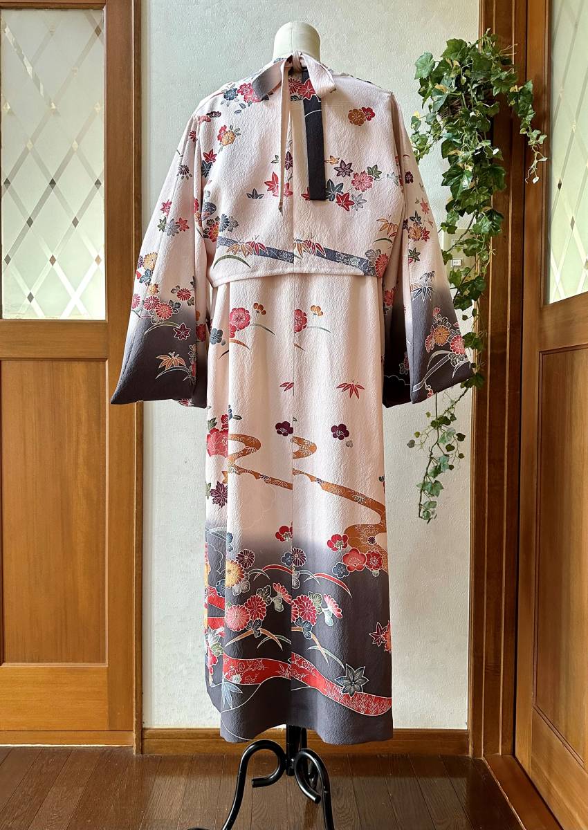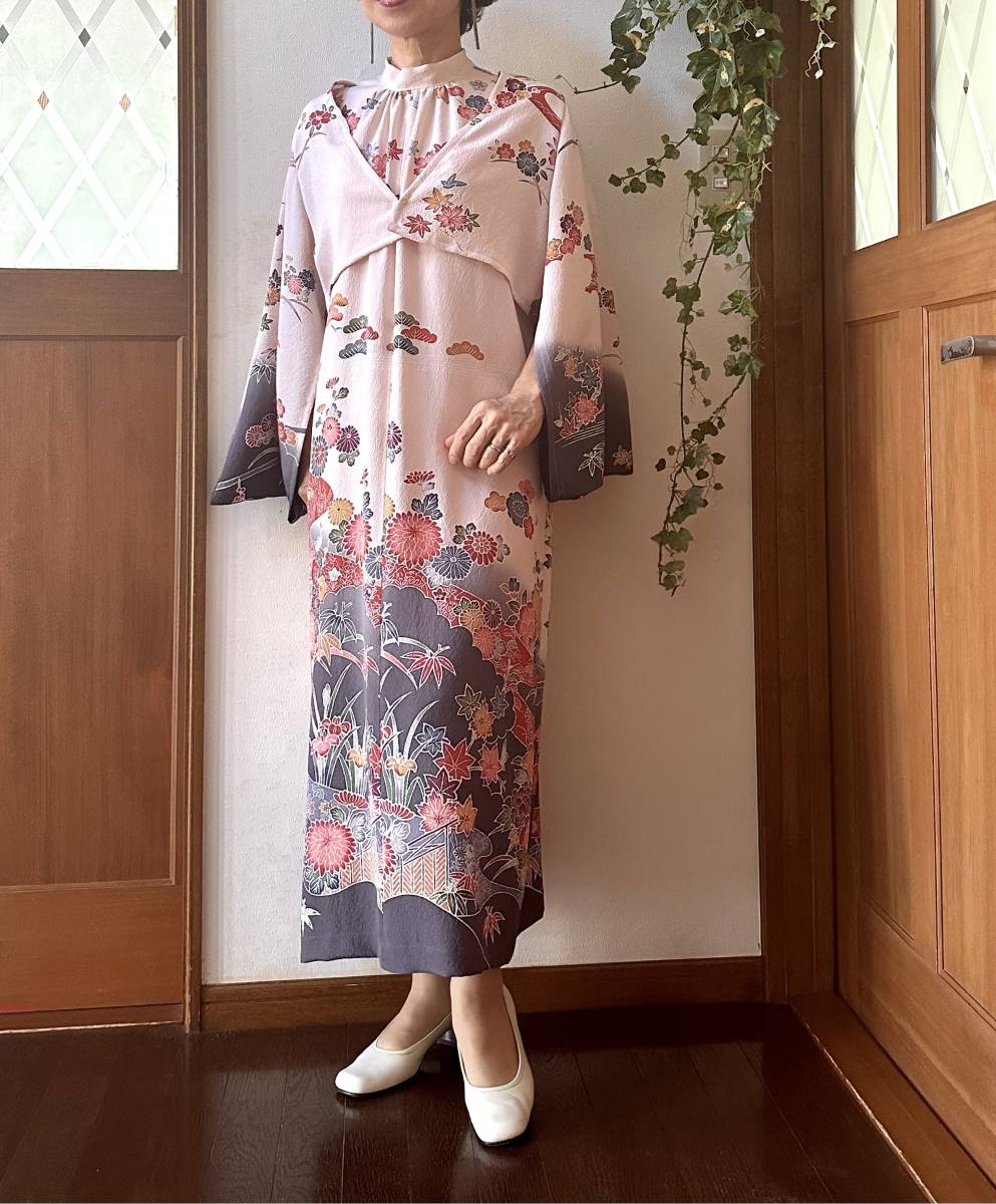披露宴やパーティのお呼ばれ席に映えるお洒落な着物ワンピースです。