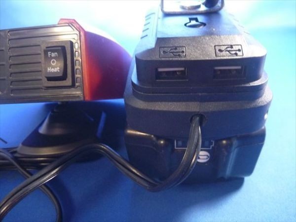 商品説明 | 新品です。 ライト付きなので地震時・非常時にも役立ちます。 BL1815 BL1830 BL1840 BL1850 BL1850B BL1860 BL1860B BL1890などの マキタバッテリーや互換品バッテリーに対応しています。 こちらはマキタの純正品ではございません。 ライトのスイッチとヒーターのスイッチはもちろん別でどちらか一方でも両方でもお使いいただけます。 写真のバッテリーは使用見本になります。バッテリーは落札者様でご用意ください。 ロットにより付属品や機能など多少変わることがあります。 写真の通り、ファンモードとヒートモードが選べます。 ライト機能もついてます。オンオフできます。 USB×2出力もついていますので携帯の充電などにもお使いいただけます。 本体は固定しても角度は変えられます。 夜間の作業や、夜釣りのお供、また非常用に |