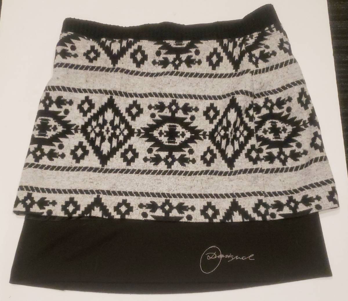 刺繍入り、ボタニカル柄と裏地が重なり2段のスカートなります。