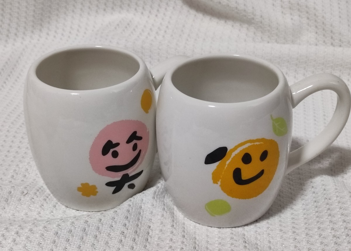 笑顔をテーマにしたしあわせほのぼのペアマグカップです。