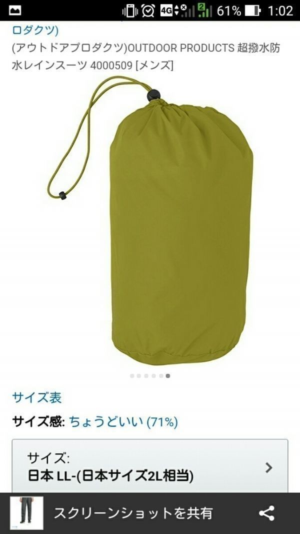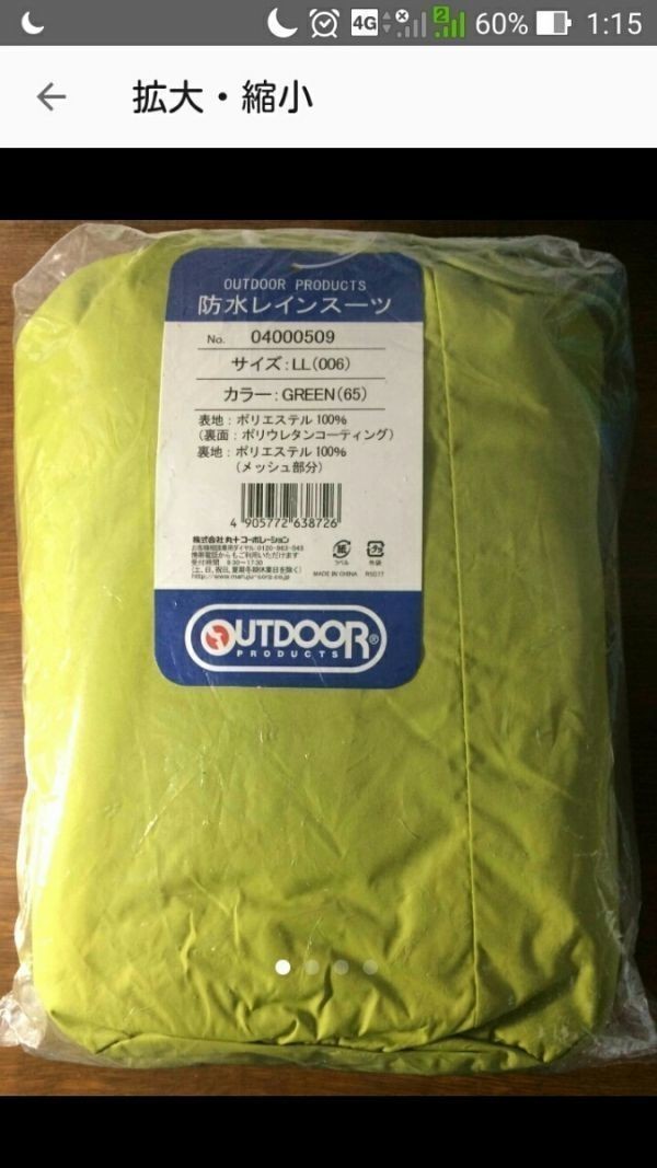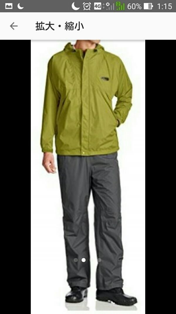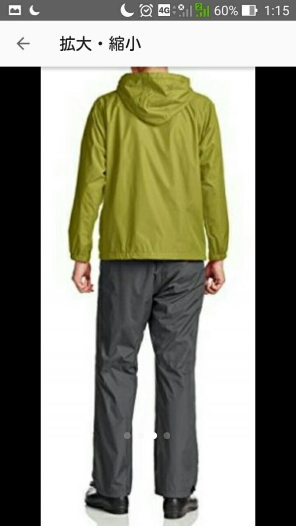直後に通勤方法が変わり片道3キロくらいしかないので雨降ってても着るより濡れて帰ればいいってなり1回も着る機会がないまま禁煙環境の自宅で保管していました超撥水防水というだけあって、かなりの雨の中でも濡れたり、湿ったりしません透湿性にも優れ、トレッキング、ハイキングなどにも使えます[適合サイズ]胸囲:96~104身長:175~185胴囲:84~94股下:81表地:ポリエステル100%(裏面:ポリウレタンコーティング)裏地:ポリエステル100%(メッシュ部分)参考価格:9504円アマゾンでの購入価格グリーン:7603円