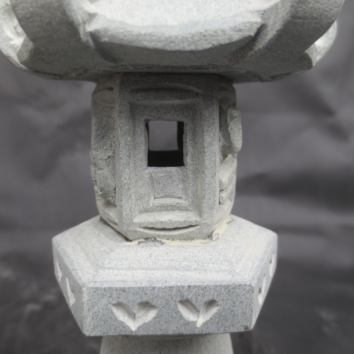 ●御影石 手作り彫刻品 ミニチュア 灯篭 曾道寺 ● サイズ(約)幅7.5×奥行7.5×高さ20【cm】 ● 材質 御影石G612 ●備考 6個の部材を接着しています。 ※1本売り価格となります 店舗・お庭や玄関まわりなどにピッタリな庭燈籠 素材...石材