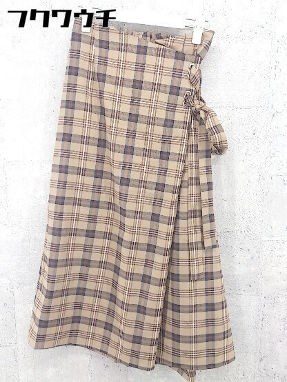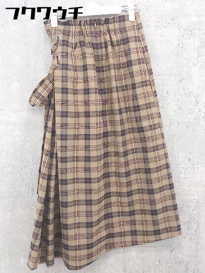 ◇ ROSE BUD ローズバッド チェック ロング フレア スカート サイズF ブラウン系 レディース
