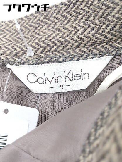◇ Calvin Klein カルバン クライン ヘリンボーン 膝下丈 タイト スカート サイズ7 ベージュ系 レディース