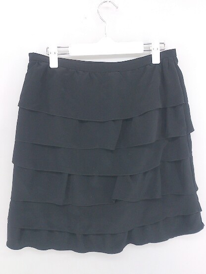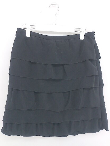 ◇ EMMAJAMES エマジェイムス サイドジップ フリル ミニ 台形 スカート 67 ブラック レディース
