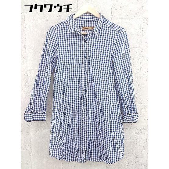 ◇ nano universe ナノ ユニバース ギンガムチェック 長袖 ロングシャツ サイズFREE ブルー ホワイト レディース