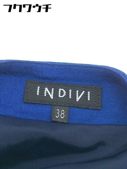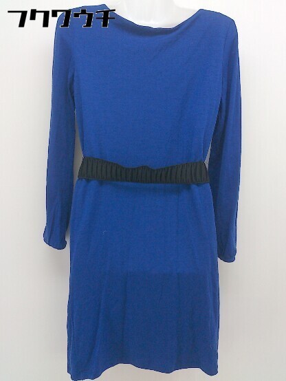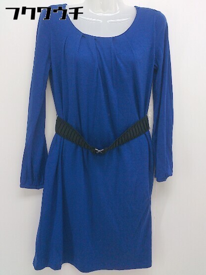 ◇ ◎ INDIVI インディヴィ ウエストベルト付 長袖 膝丈 ワンピース サイズ38 ブルー レディース