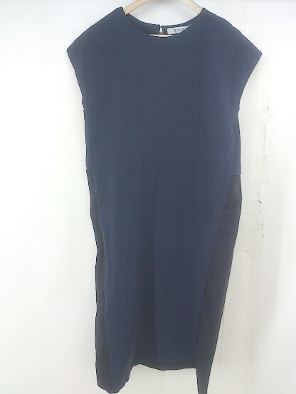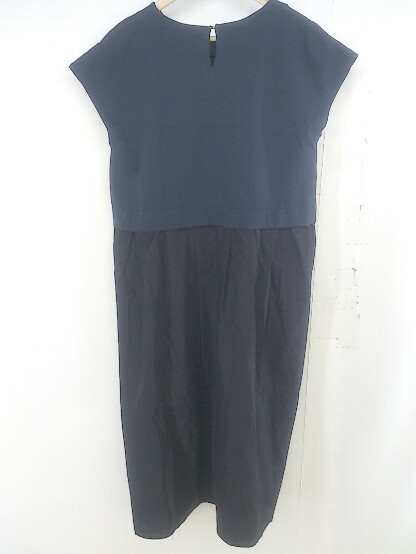 ◇ nano universe ナノユニバース フレンチスリーブ ロング ワンピース サイズF ネイビー系 ブラック レディース