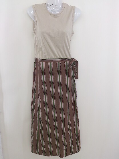 ◇ AZUL BY MOUSSY ストライプ ノースリーブ ロング ワンピース サイズS ベージュ ブラウン レディース