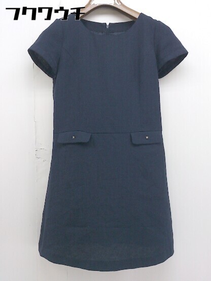 ◇ NATURAL BEAUTY BASIC バックジップ 半袖 ミニ ワンピース サイズS ネイビー レディース