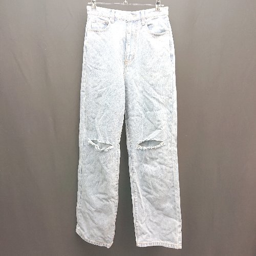 ◇ SNAP CLUB ダメージ加工 カジュアル ストリート 綿ポリエステル混合生地 デニムパンツ サイズM ブルー レディース E