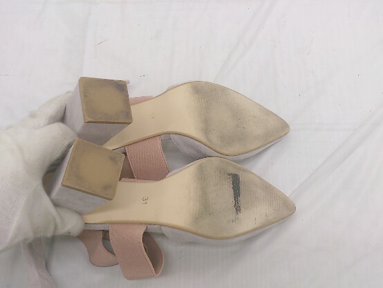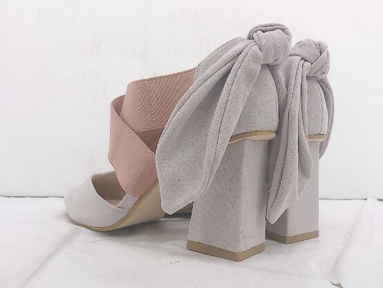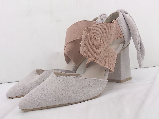 ◇ 31 Sons de mode クロスベルト リボン ヒール パンプス サイズ約22.5cm相当 グレー ピンク系 レディース E
