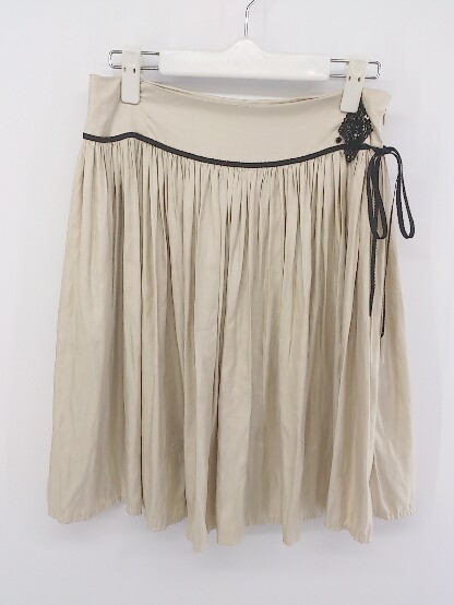 ◇ Yangany ヤンガニー 装飾ビジュー 膝丈 ギャザー スカート サイズ38 ベージュ系 レディース P