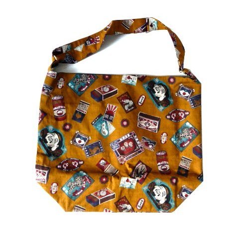新品 大きい ショルダーバッグ 綿 コットン 総柄 レトロ柄 マッチ柄 鞄 かばん レディース キッズ
