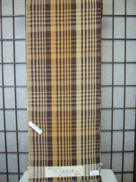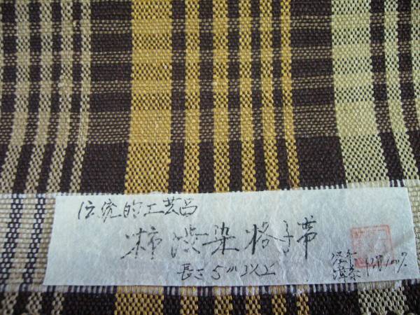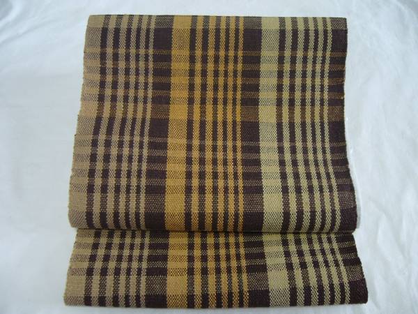 秀匠☆ 在庫品 伝統工芸品 柿渋染格子帯 八寸名古屋帯 No2 09501