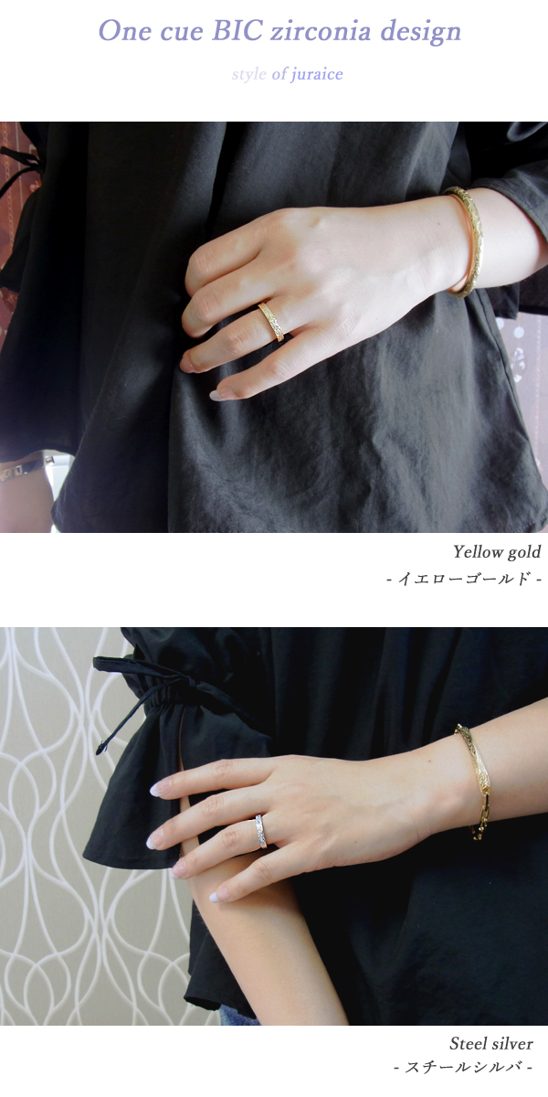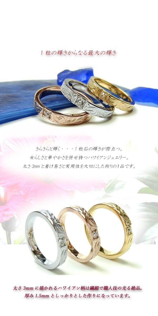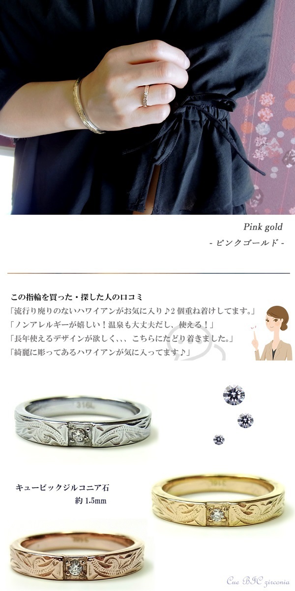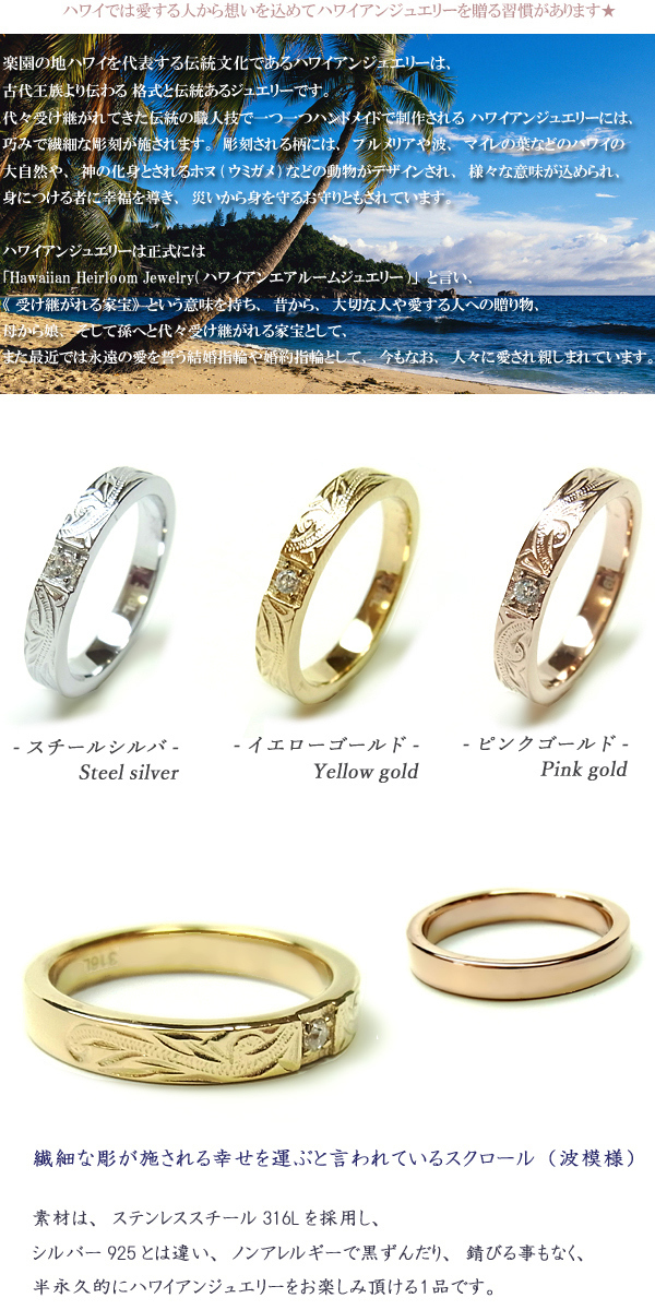 ★ハワイアンジュエリー★金属アレルギー&温泉&海水浴OK★ステンレスリング★シルバー&ゴールド&ピンクゴールドスクロール&ジルコニア★