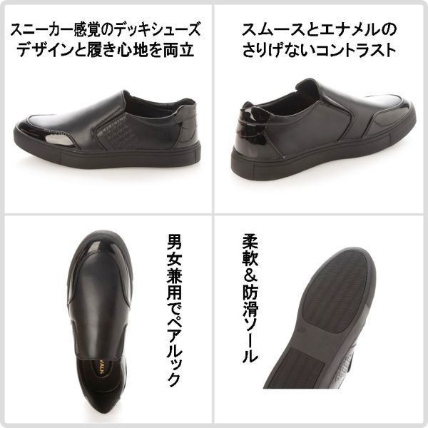 B品 21109 スリッポン カジュアルシューズ ブラック 25.0cm スニーカー 2トーン デッキシューズ レディース メンズ 黒