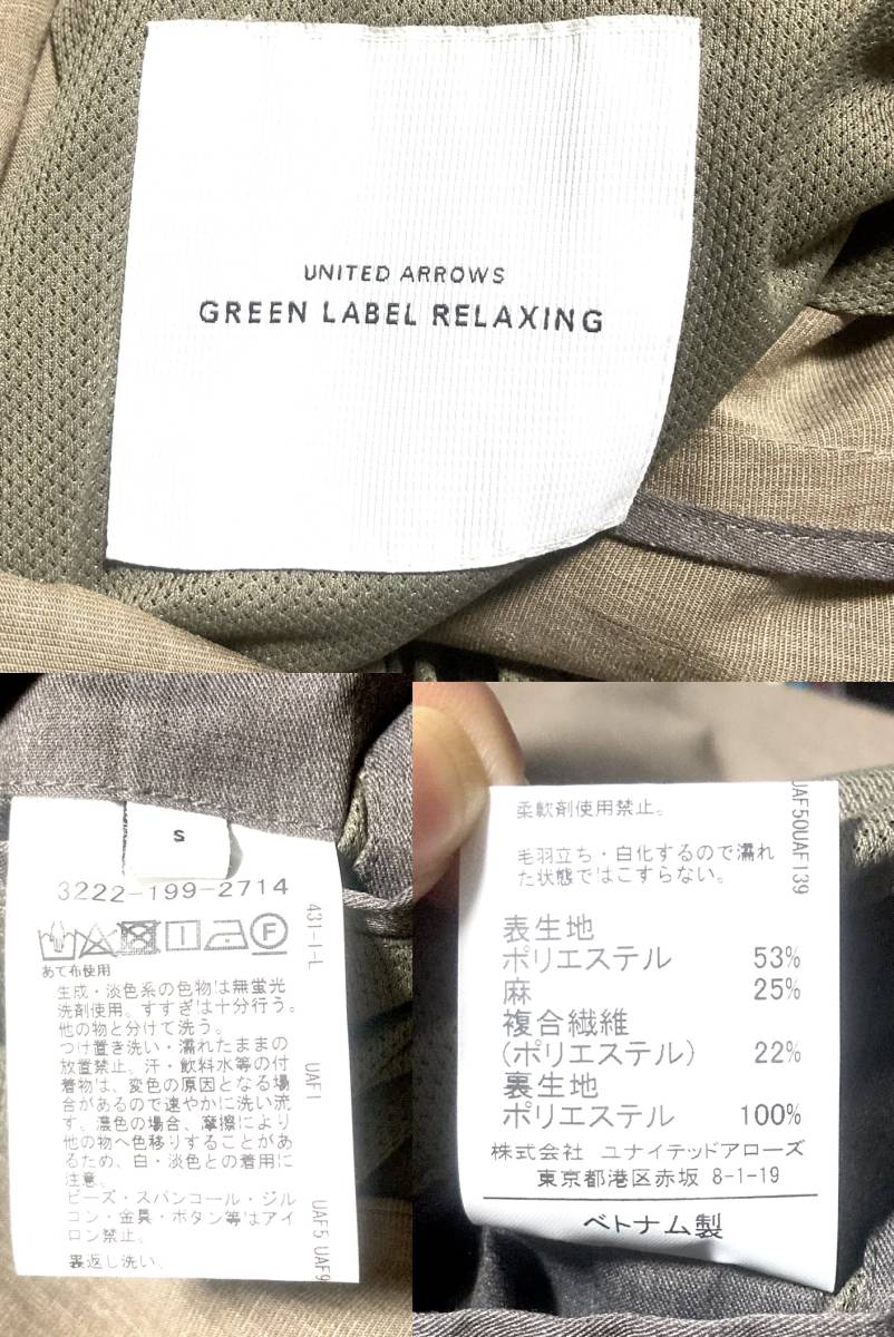美品 UNITED ARROWS green label relaxing ジャケット ブラウン 茶 色 テーラード ユナイテッドアローズ S サイズ 無地 32221992714