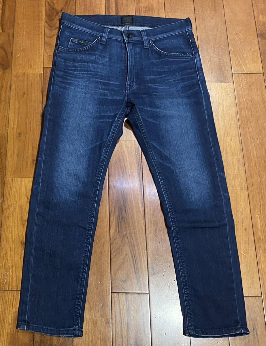 リーライダース×ナノユニバースのストレッチ アンクルスキニーデニム(ジーンズ)、LB0253です。色はインディゴブルーです。USEDですが状態は良いです(10段階中8程度)。生地はストレッチ入りで綿84%、ナイロン14%、ポリウレタン2%です。牛革パッチ、ジッパーフライ、裾はチェーンステッチです。正規品です(リー・ジャパン(株)、日本製)。サイズはSでウエストは重ねずに平置きで約77cm、ヒップ約95cm、股上約25cm、股下約62cm、股下15cmのふともも部分約44cm、裾まわり約30cm、重量約340gです。発送はゆうパケットポストになります。