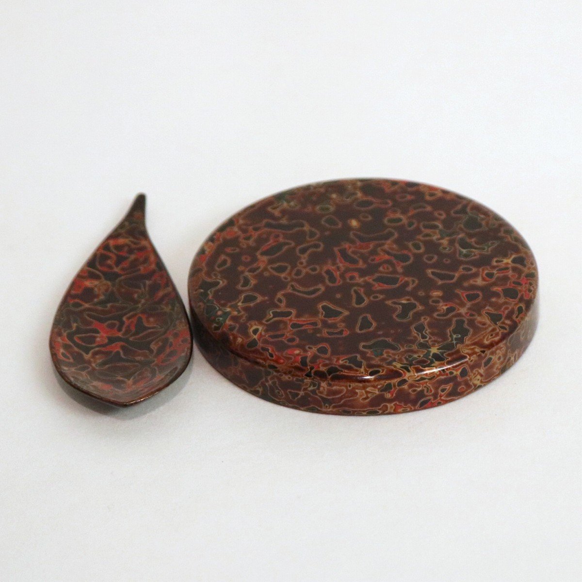 津軽塗急須台(直径:約93㎜、高さ:約18㎜)、津軽塗茶べら(幅:約100㎜×37㎜、高さ:約7㎜)、状態ランク:B