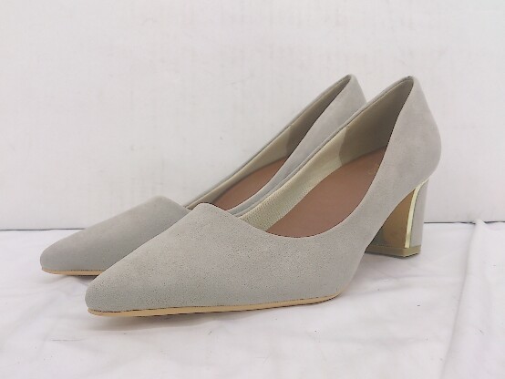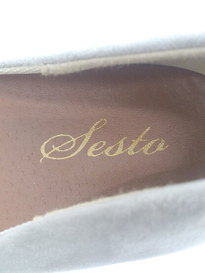 ◇ SESTO 大人女子 ポインテッドトゥ チャンキーヒール パンプス シューズ サイズ25.5cm ライトグレー系 レディース P