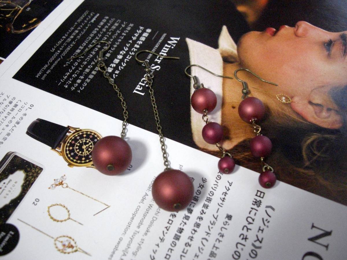 もうすぐバレンタイン・・お気に入りの赤を集めて・・シリーズです♪深い赤の樹脂パールのピアス2点セットです♪どちらもシンプルなデザインで大人可愛い表情です♪左の14ミリの丸玉のピアスは全長8センチ位です♪右側の、8ミリ、6ミリ、4ミリの大きさ違いの樹脂パールのピアスは全長6センチ位です♪どちらもイヤリングに変更可能です♪お揃いのネックレスやブレスレットも出品しています♪ハンドメイドをご理解いただいてノークレーム、ノーリターンでお願いします♪