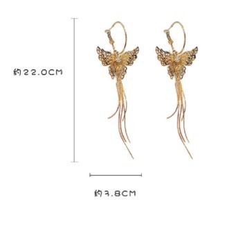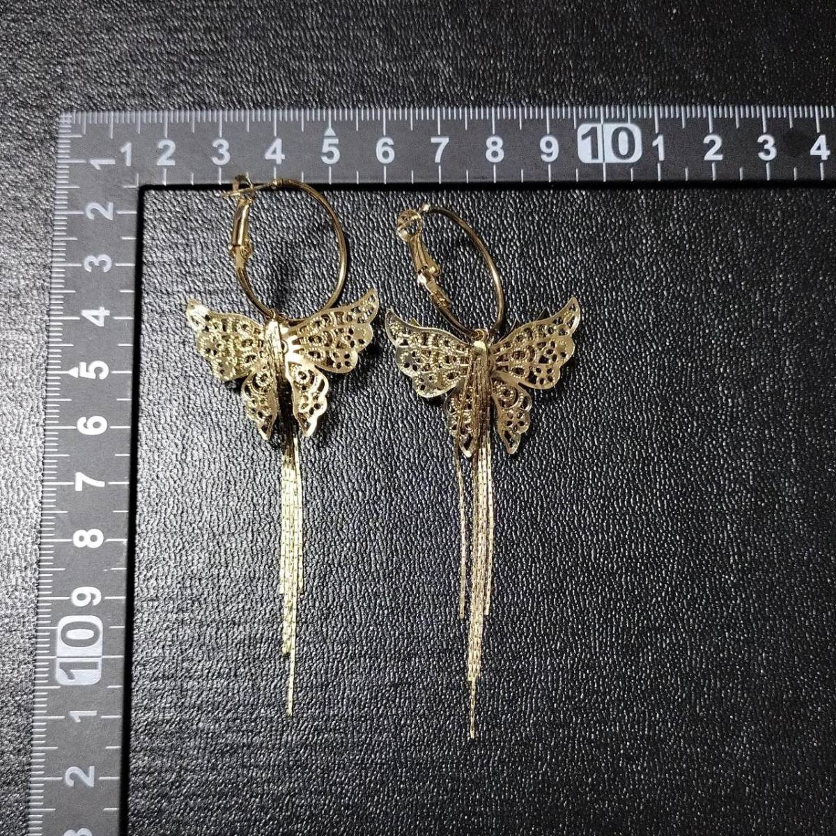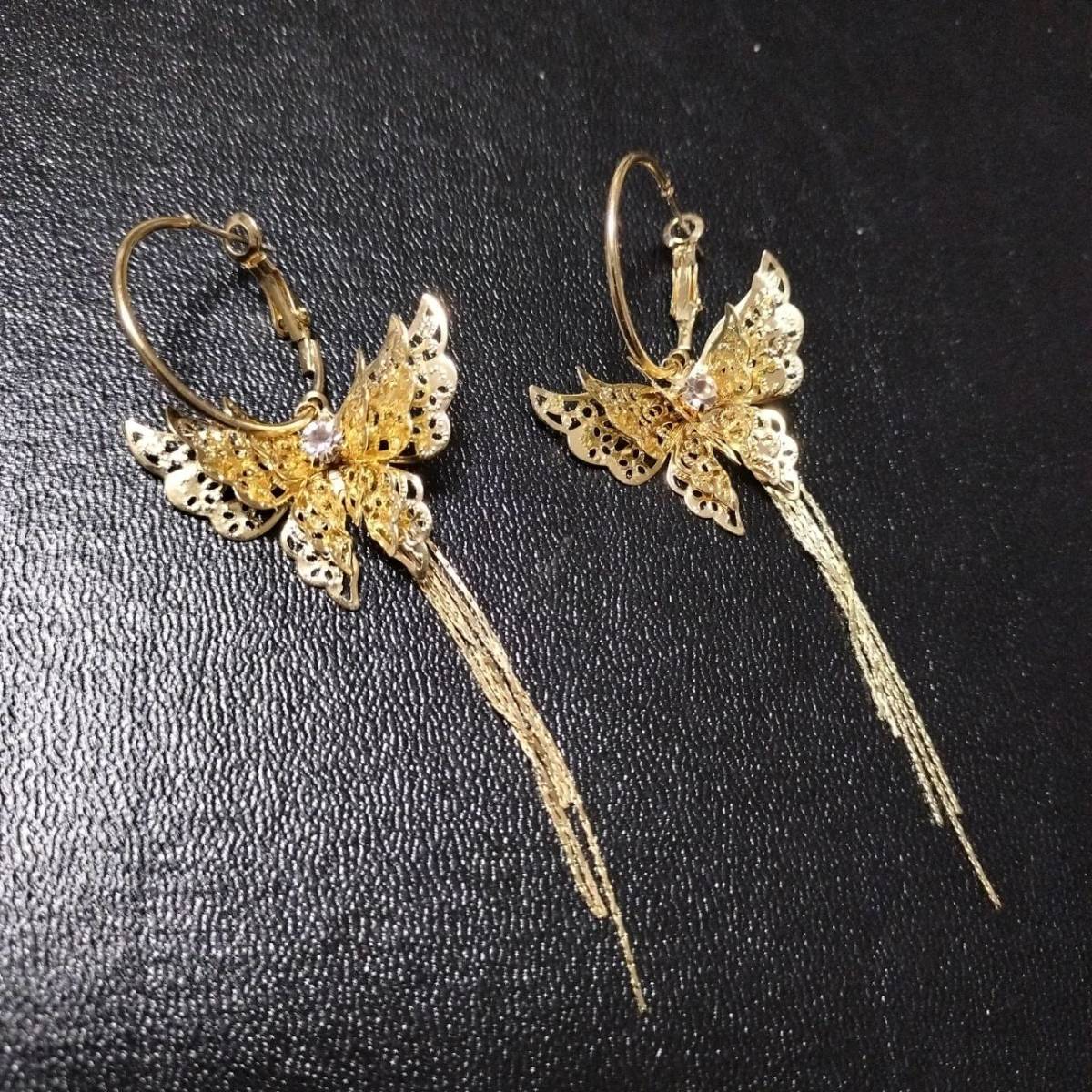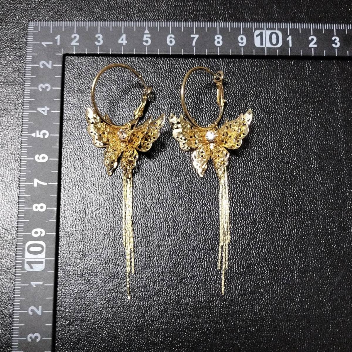 新品未使用 ピアス S925針 ゴールド 大ぶり 蝶 バタフライ ロング タッセル ラインストーン レディース 韓国 エレガント キラキラ #D17-2