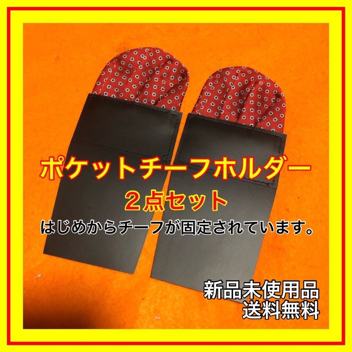 ポケットチーフ(ホルダーに固定済)2点セット。送料無料。よろしく御願い致します。