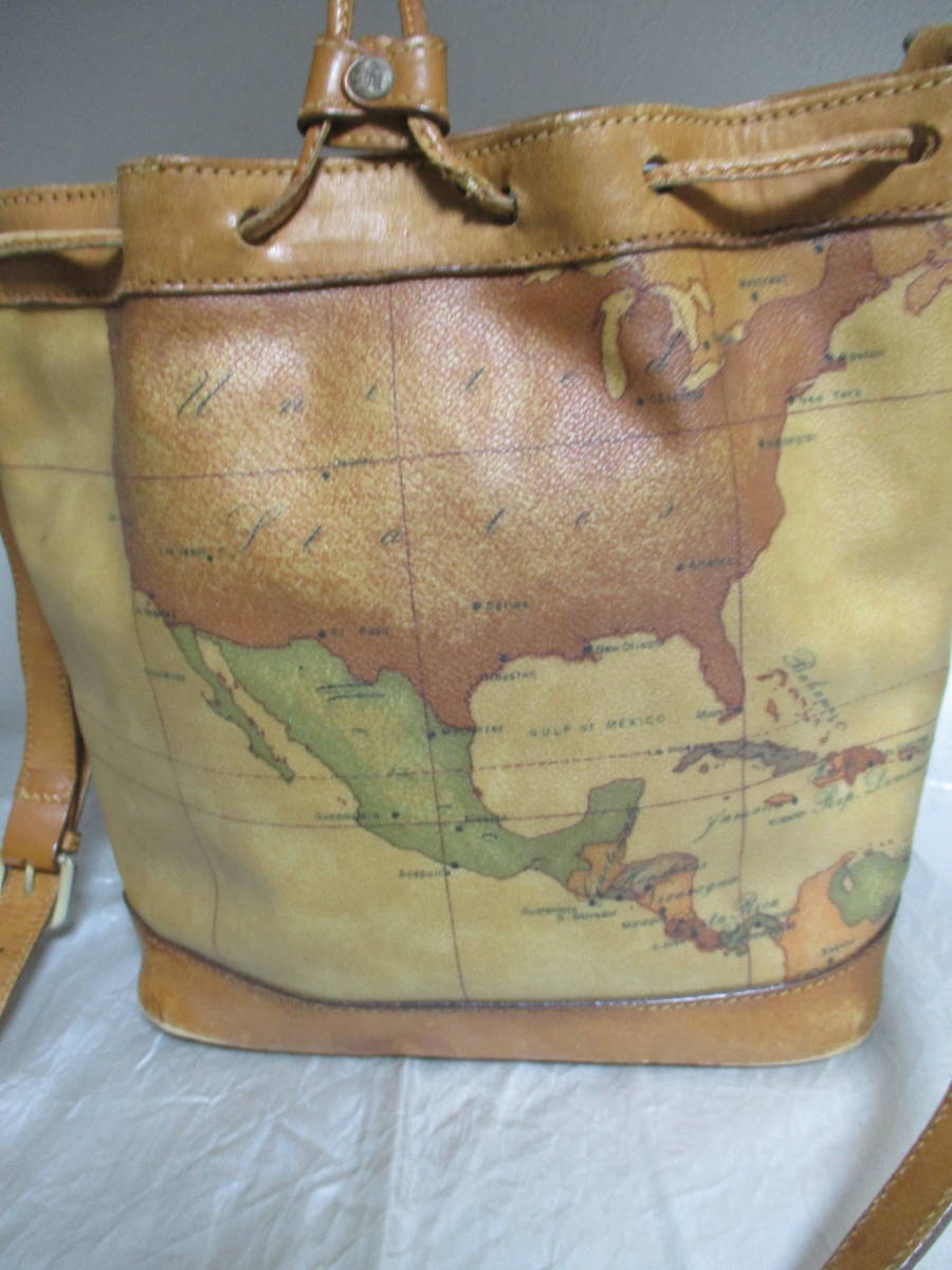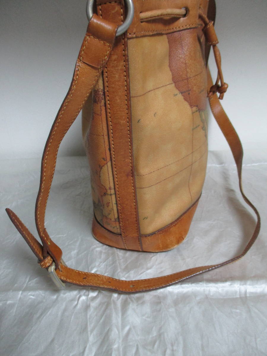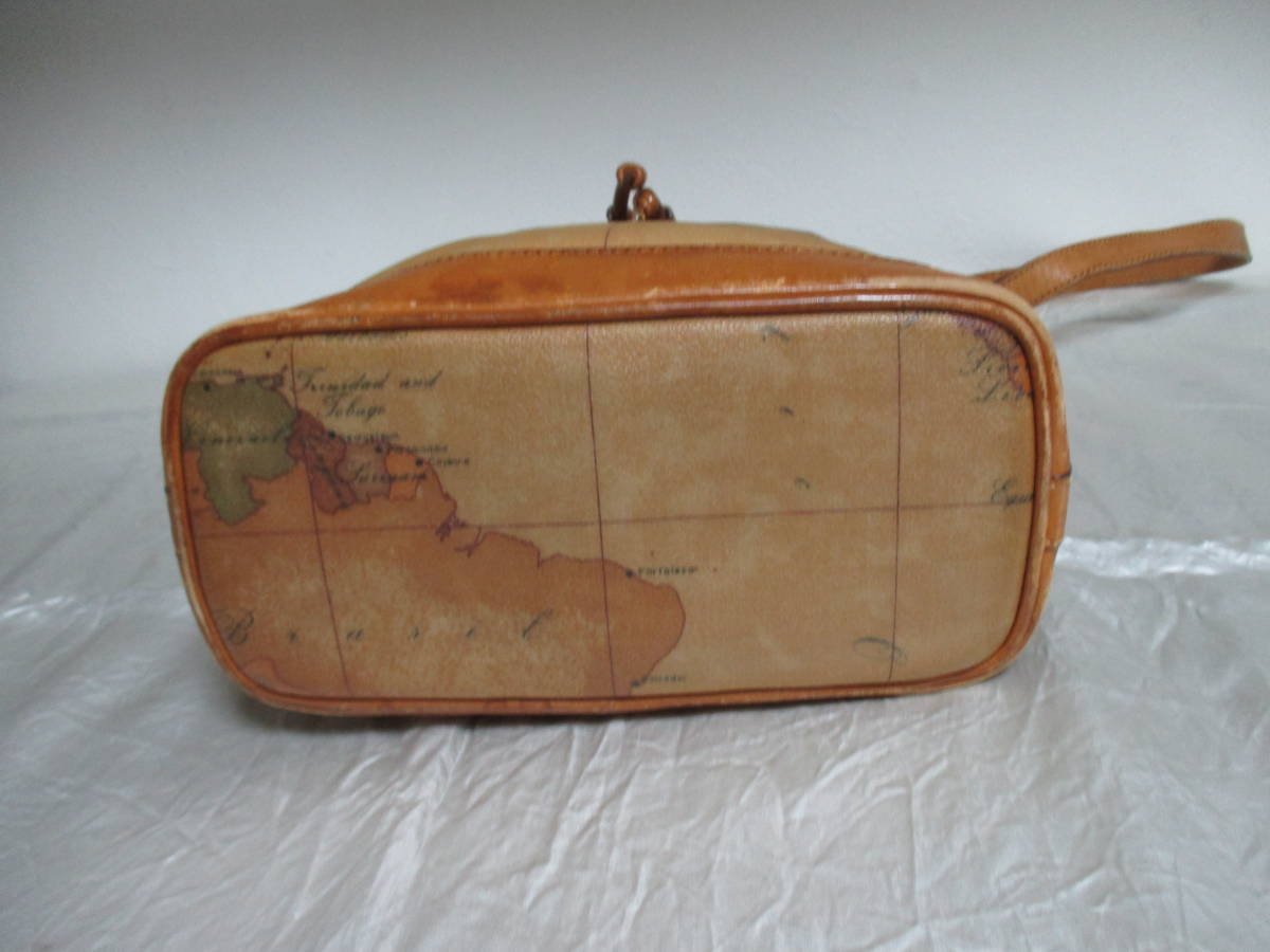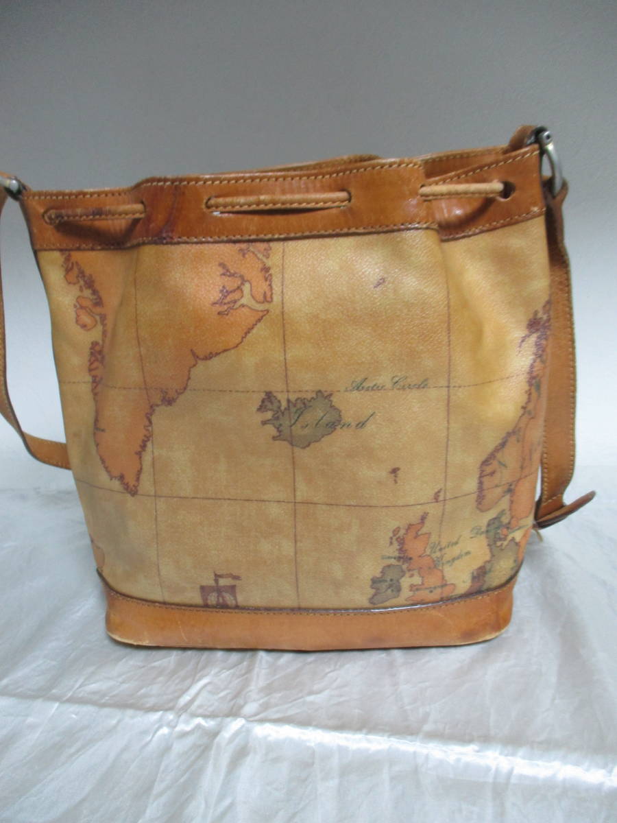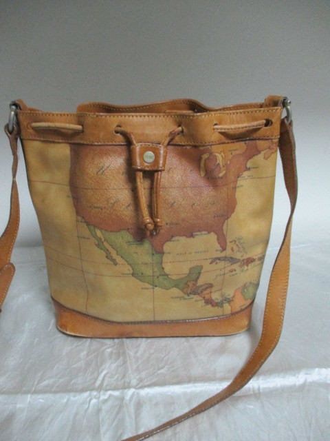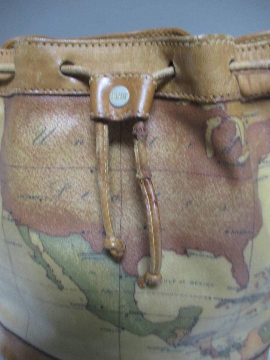 | 商品紹介 | プリマクラッセ定番の地図柄バッグです。 ベージュから茶系の色合いです。 斜め掛け出来る形で、入れ口は紐で開閉するようになっています。 内側はメインの物入れの他、背面側に1か所、 ファスナー付きポケットが付いています。 |
