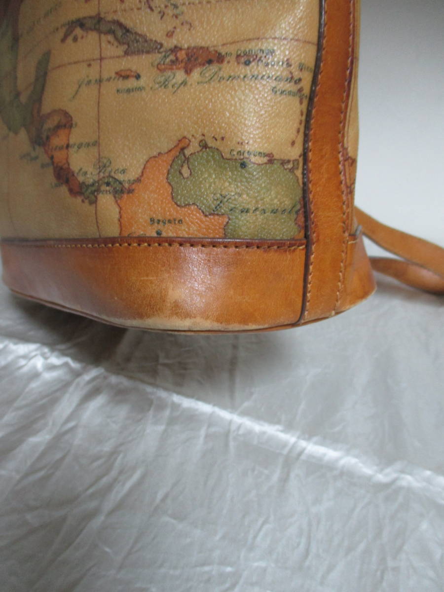 | 商品状態 | ( C ) 無地の生地部分、所々、シミあり。 底の角にスレあり。 入れ口の紐の革部分にひび割れ数箇所あり。 (中に紐が通っているので使用に問題ありません。入り口を紐で絞らない状態で使うとひび割れ部分が目立たない位置に隠れます。) 内側、ファスナー付きポケットの中にシミ・汚れあり。 ランクの見方 S・・・新品、新品同様の美品 A・・・使用感のない美品 B・・・使用感がありますが美品 C・・・そこそこ使用感あります D・・・かなり使用感があります |