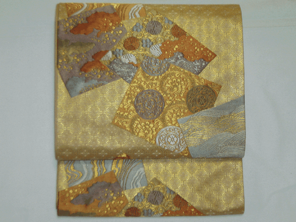 秀匠 ☆ 在庫品 正絹 袋帯 豪華な逸品 箔華全通 七宝色紙連文柄 5144