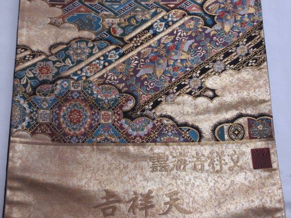 秀匠①在庫品 正絹 袋帯 豪華な逸品 吉祥天 雲海吉祥文柄 5190