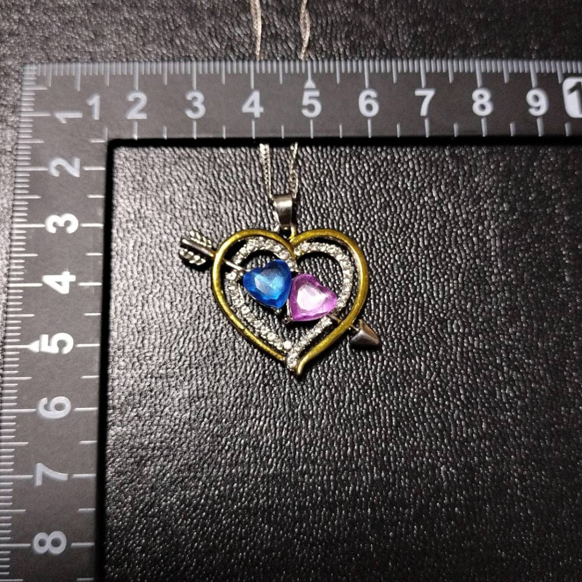新品未使用 ネックレス シルバー チェーン ハート アロー 青 紫 矢 ブルー パープル レディース 韓国 ラインストーン クリスタル #D72-2