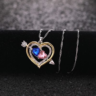 商品説明ネックレス シルバー チェーン ハート アロー 青 紫 矢 ブルー パープル レディース 韓国 ラインストーン クリスタル アロー ペンダント 女性 かわいい ロマンチック ペンダント