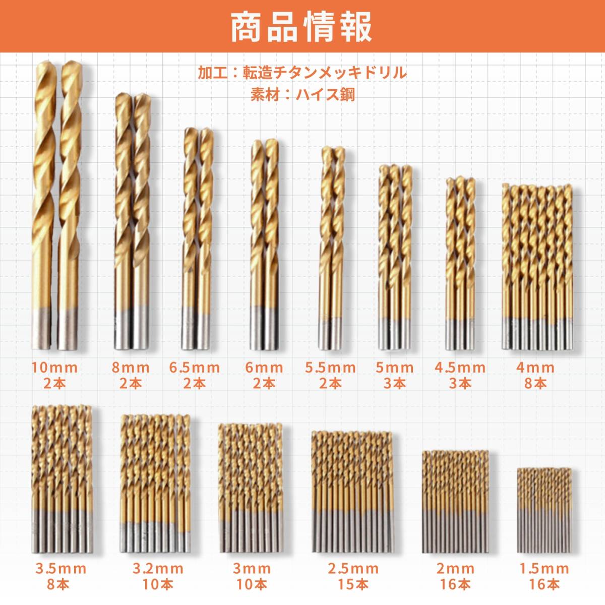 豊富なサイズバリエーション:セットには1.5mmから10mmまでのさまざまなサイズのドリルが含まれています。必要なサイズを選びやすく、幅広い作業に対応できます。
