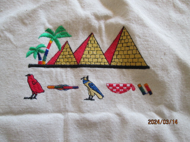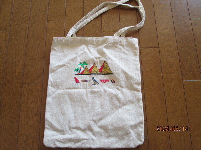 エジプト旅行の際に購入したピラミッド刺 キャンパストートバッグ 41Hx34W 手持ち部28H