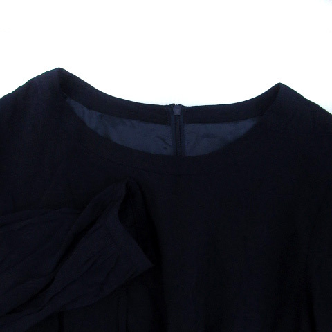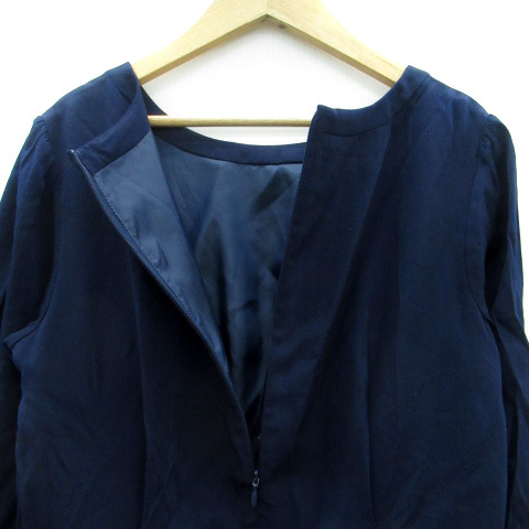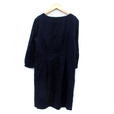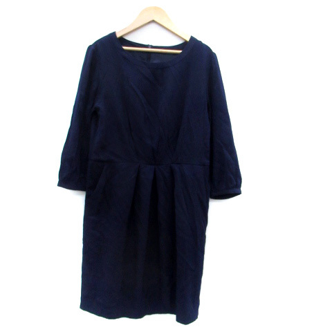ナチュラルビューティーベーシック NATURAL BEAUTY BASIC ワンピース ラウンドネック 七分袖 ひざ丈 M 紺 ネイビー /HO11 レディース
