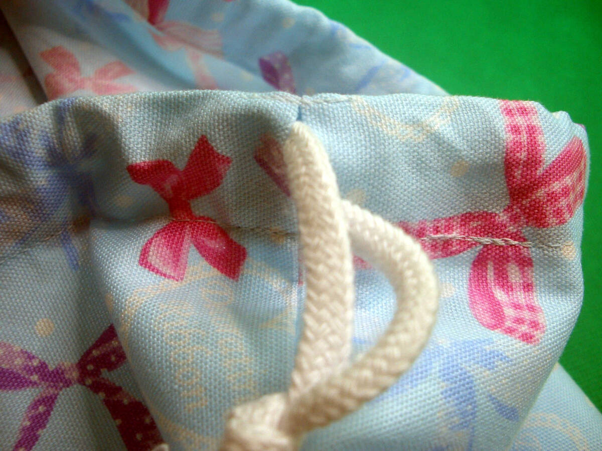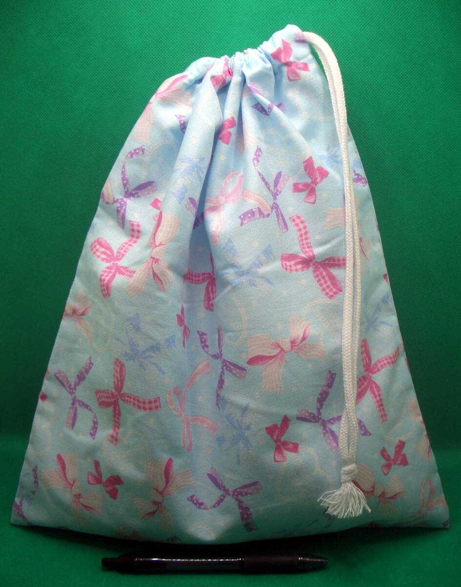 1,000円以上落札で送料無料 即決 体操服袋 片手絞り 水色 リボン ハンドメイド 着替え袋 女の子 手作り