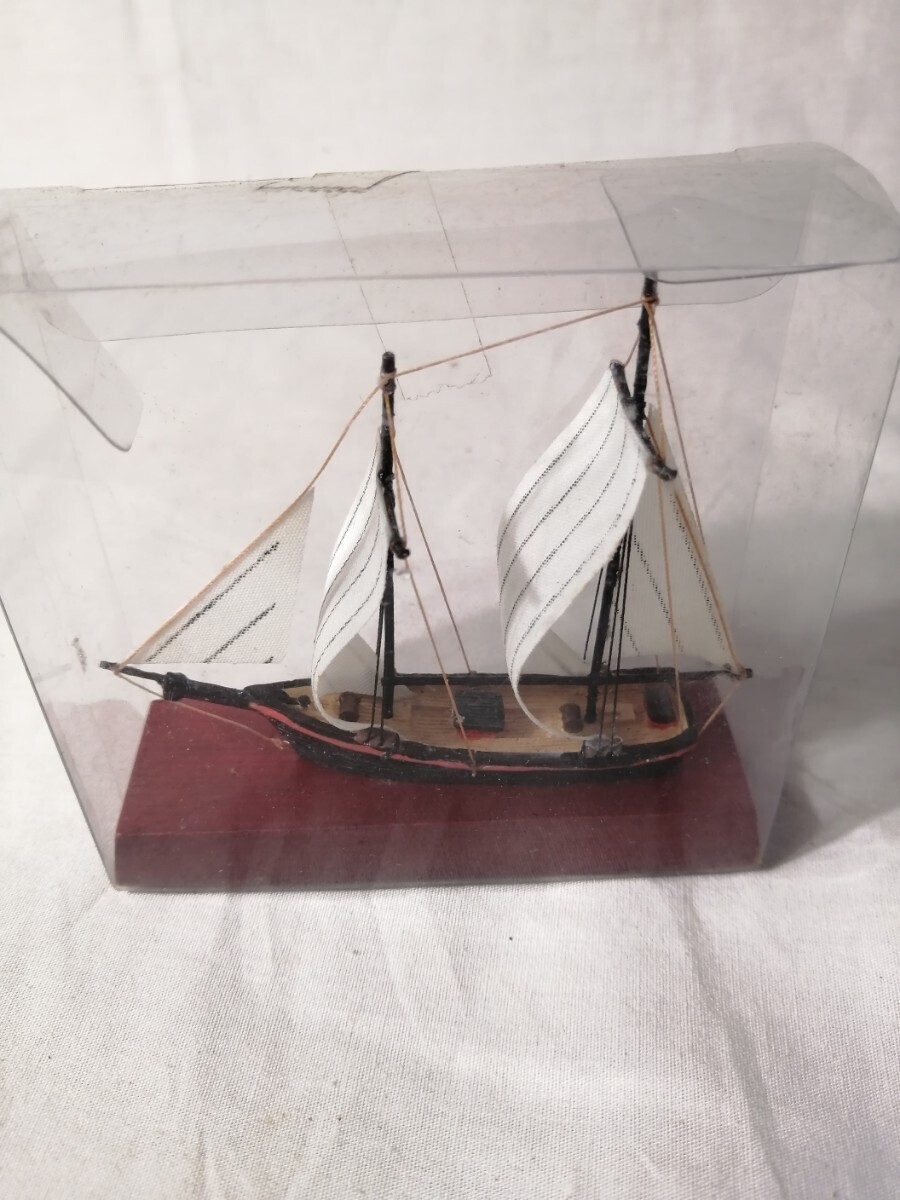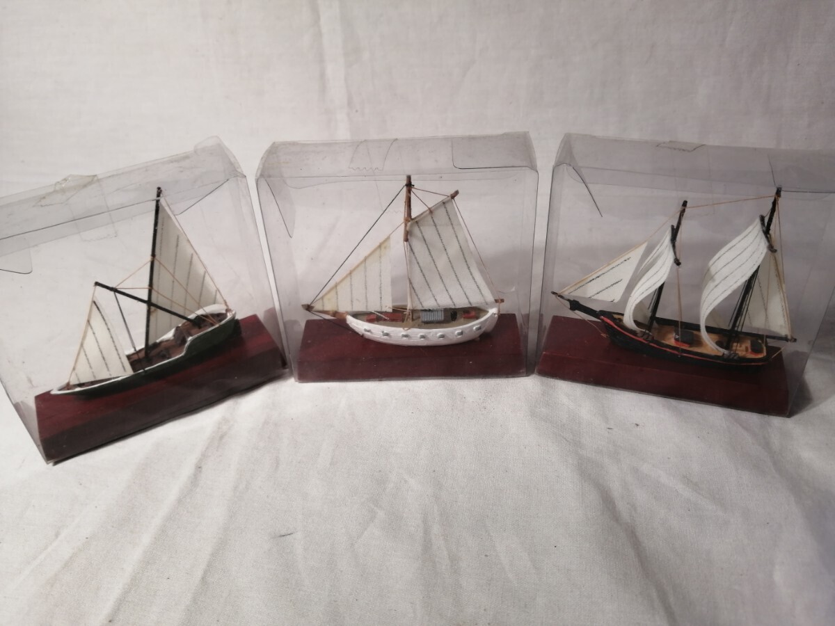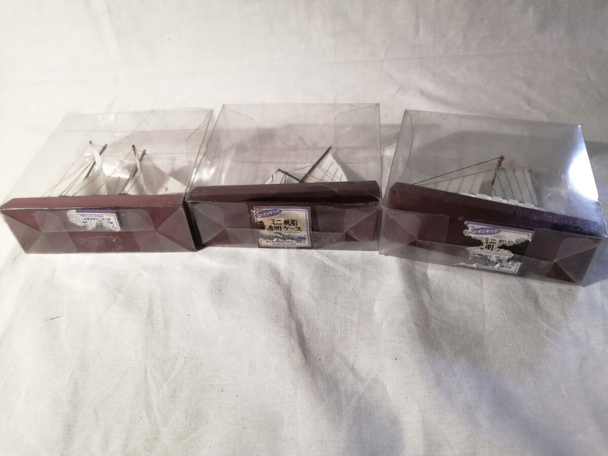 2000年頃のセルケース入りの帆船模型三点です。店舗在庫品できれいな状態です。窓辺の置物として最適です。9㌢X8.5㌢X3㌢32~35㌘