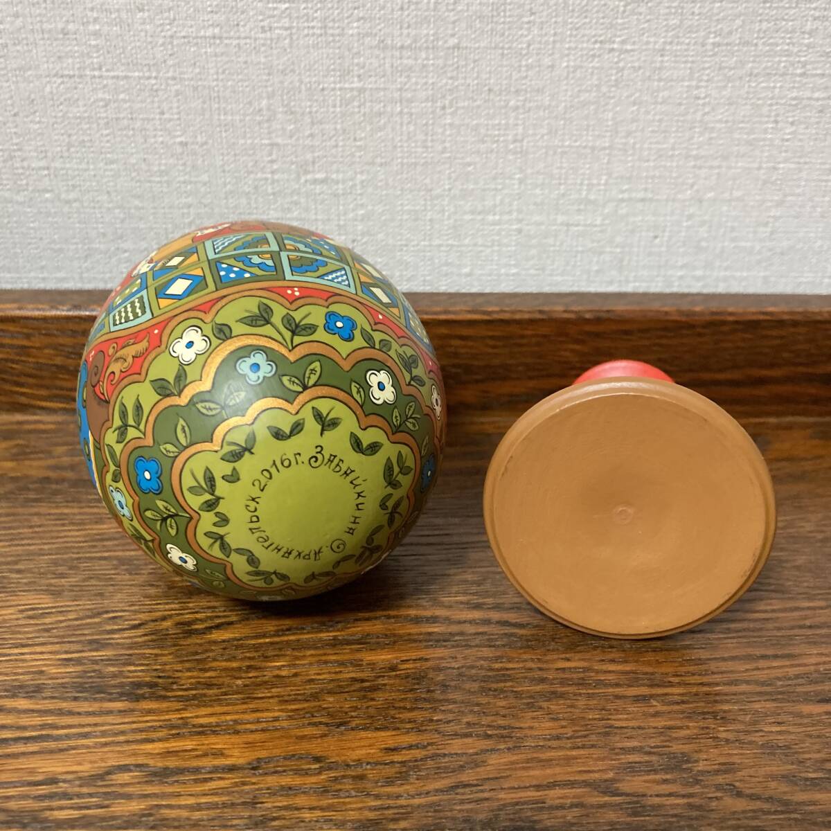 オリガ・ザバイキナさんの特大エッグオーナメントです。美しいアルハンゲリスクの伝統模様を女性達が楽しそうにパッチワークしている様子が描かれています♪ 2016年に制作された作品で、とても大きなサイズのエッグなので飾るととても豪華です。