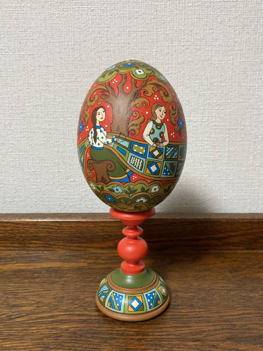 ロシア雑貨☆特大イースターエッグ(スタンド付き)H21cm オリガ作 マトリョーシカ