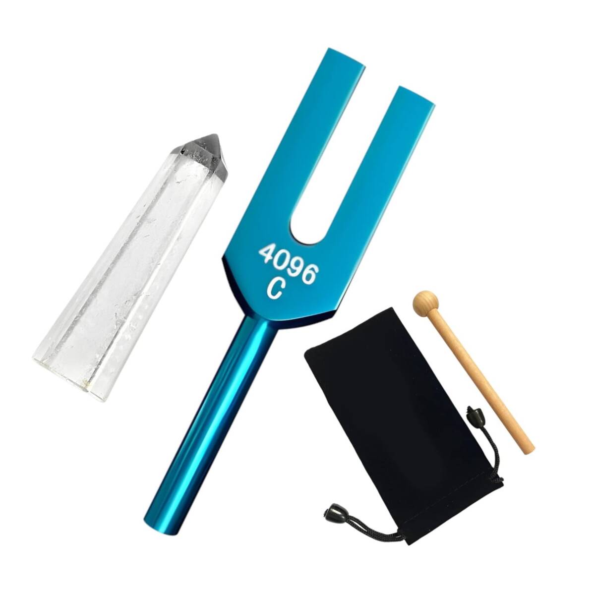 heizi 音叉 クリスタルチューナー 4096Hz 水晶 セット ヒーリング 収納袋付き ブルー 心に響く音色が癒しの効果を高めます