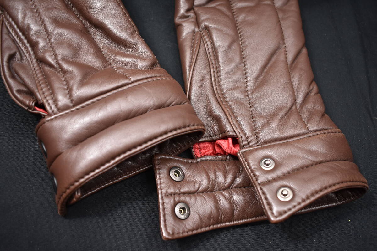 サイズ表記0、色茶、素材羊革。中綿ポリエステル、日本製