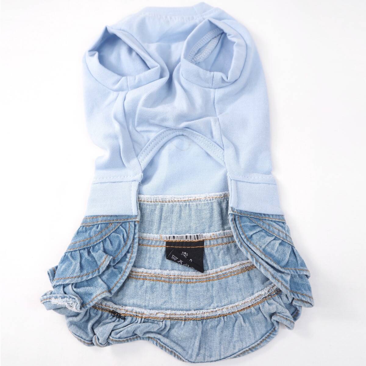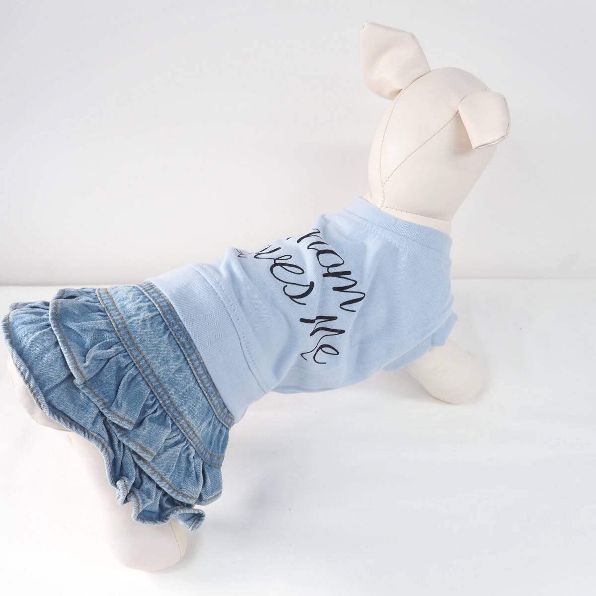 ワンピース ワンピ S~XLサイズ DD139 パピー 小型犬 犬 猫 ペット 服 犬服 猫服 カジュアル デニム 可愛い 春夏 シンプル フリル 春服