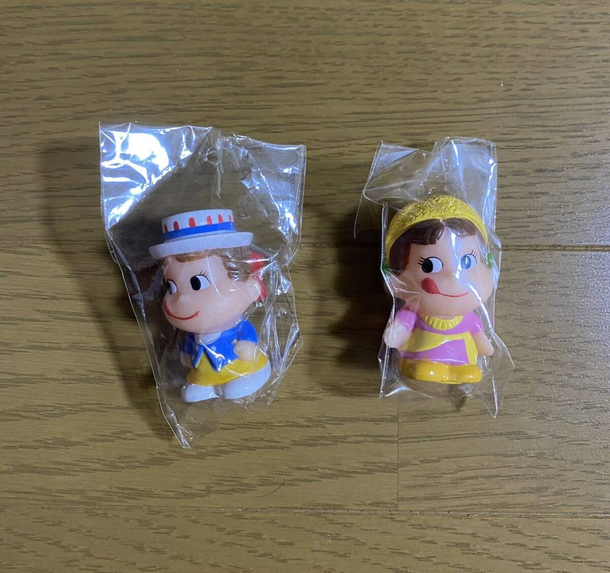 【4】「ミニフィギュア」×2種→20年以上前くらいに某・有名大型雑貨店で画像の状態で新品販売されていた物を購入し、長期保管していた未使用品です。購入時には気付かなかったのですが今回の出品にあたり確認した所、不二家等の刻印が見当たりませんでした。あくまでもオマケ扱いの品物ですので、ご了承下さい。